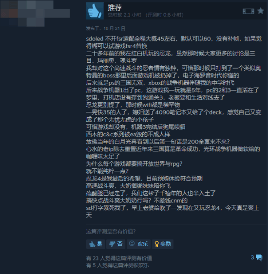 许多给出好评的玩家都夸赞本作的战斗手感优秀。
