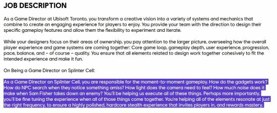 据介绍,育碧多伦多工作室目前正在为本作招聘一名新的游戏总监,而这也就代表着原先的游戏总监已经离开岗位。