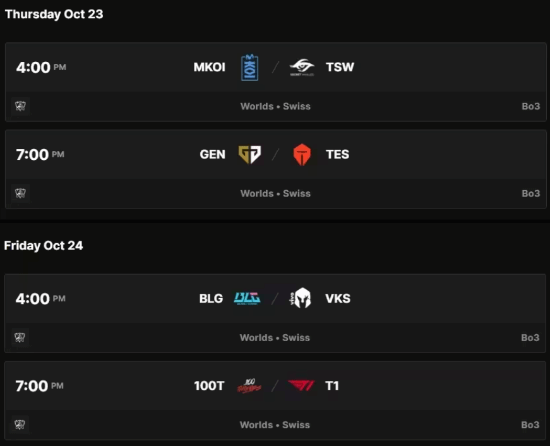 在经过两天的修整后,《英雄联盟》S15全球总决赛小组赛瑞士轮环节再次开打已于今日正式开打,身处2-1组的LPL二号种子TES战队将于10月23日晚7点对战GEN战队,而1-2组的LPL一号种子BLG将在10月24日下午4点对战VKS战队。