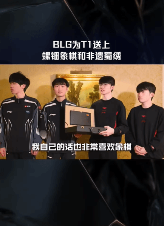 在今日英雄联盟赛事官方发布的最新视频中,BLG战队为T1战队的中单选手Faker送上了螺钿象棋,为T1的辅助选手Keria送上与熊猫娃娃 拉克丝臻彩系列同主题的非遗蜀绣礼物。