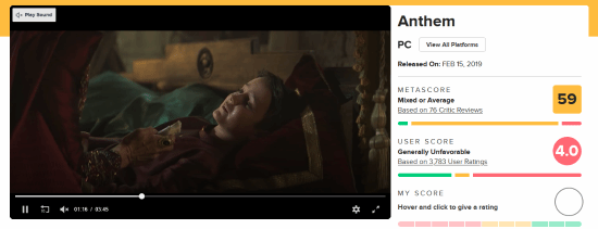 他回忆称游戏原本预期能在M站拿到大约70分的评分,但最终结果却远不及此。“《圣歌》于2019年2月22日发售,媒体评价——我甚至不能说是‘褒贬不一’,它们就是差评。真的很差。现在Metacritic上的评分是59,比我们原本目标的70多分要低得多。”