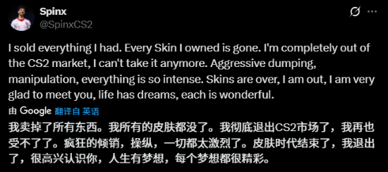 此次更新无疑重创了以囤货炒作为主的饰品商人。有报道称,仅更新当天,整个饰品市场总价值便蒸发超10亿美元。不少自用玩家也表达不满:“看着库存价值直接腰斩,确实不好受。”更有职业选手公开吐槽并宣布退坑。