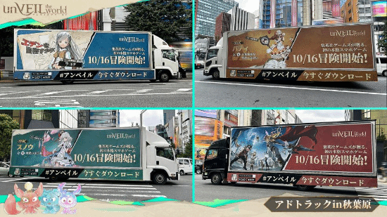 为纪念游戏上线,在东京的秋叶原、涩谷、池袋、新宿的人气商圈及山手线车站,同步发布了使用游戏角色与桥本环奈形象的大型广告。此外,更有由多辆定制痛车组成的"冒险车队"在秋叶原中心区域巡游等,在东京展开了多元化的线下活动,为粉丝们提供沉浸式体验。