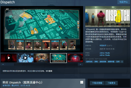 《超英派遣中心》是一款超级英雄职场喜剧游戏,其中的故事发展将因你的选择而变化。你将管理一队由不合群的异类英雄所组成的功能失调团队,策略性地派遣不同的英雄到城市中各紧急事故现场处理事故,同时还要平衡办公室政治、人际关系,以及追寻你自己的英雄旅程。
