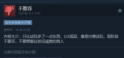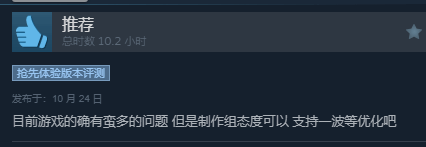 当然,也有玩家指出游戏当前仍存在优化不足、内容偏少等问题,但整体态度较为宽容——毕竟它还处于EA阶段,后续更新值得期待。