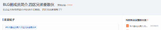 据多位网友在微博发布的消息报道,由于不明原因,BLG战队在抖音个人简介里的队员名称(陈泽彬、杨陵、卓定、赵嘉豪、骆文俊)已被删除,且出现了掉粉的情况。截至发稿前,“BLG删成员简介,四区兄弟要散伙”话题登上了贴吧热议榜的第一名,引来众多玩家围观,一些玩家担忧BLG可能会出现人员变动或者解散的情况。