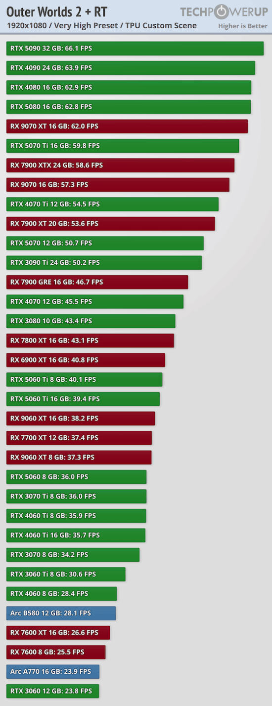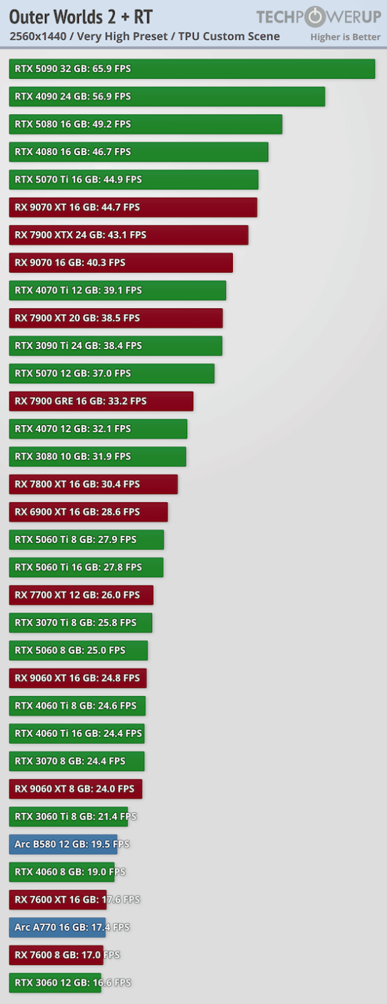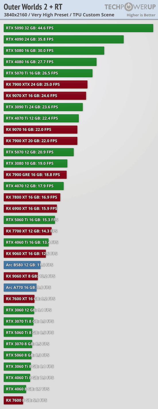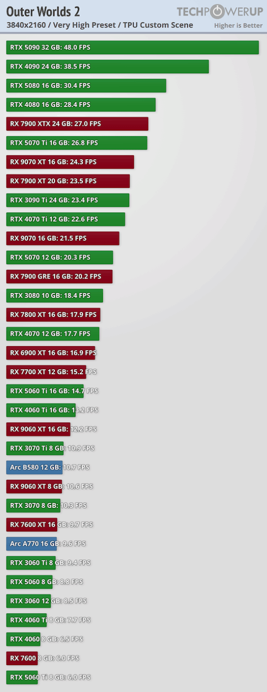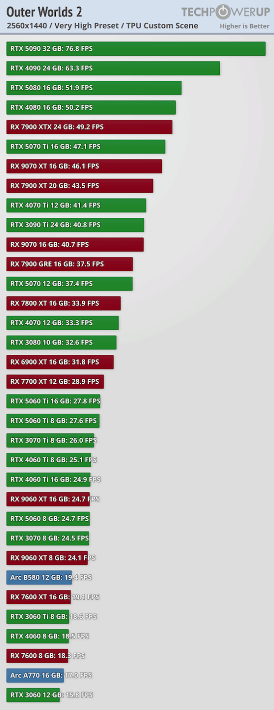 外媒techpowerup公布了PC版《天外世界2》多个显卡的性能天梯图。