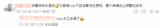 还有玩家称,这么喜欢吐舌头可以COS《王者荣耀》里的太乙真人,毕竟太乙真人的2技能就是吐舌头抓住敌方英雄。