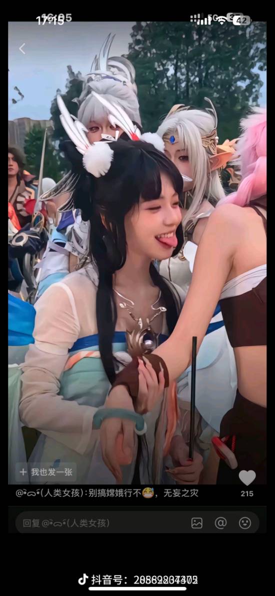 许多玩家,尤其是嫦娥玩家和角色忠实粉丝,对博主在合照环节的吐舌头、跳“来财舞”等动作非常不满。他们认为这些行为与嫦娥 “清冷出尘、高不可攀” 的经典人设存在巨大偏差,是严重的OOC(脱离角色设定)。有玩家直言“嫦娥住的是广寒宫不是怡红院”,强调在商业活动中Coser应符合角色定位。
