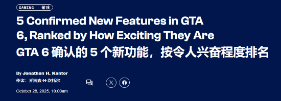外媒ComicBook近日发表了一篇文章,按照令人兴奋的程度盘点了《GTA6》目前已经确认的5个新功能,本文简要翻译整理如下: