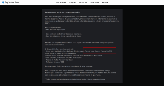 我们曾报道,有爆料称索尼不小心泄露了《生化危机9:安魂曲》中里昂的豪华版服装的信息:在葡萄牙语豪华版的官方PlayStation 5预购页面上,意外地列出了里昂的豪华版服装。