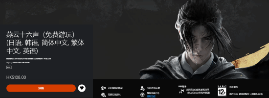 截至写稿时,《燕云十六声》在港服PS Store预购榜排名第二。