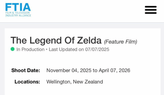 根据影视行业联盟(FTIA)网站显示,《塞尔达传说》真人电影的制作状态现已从“前期制作”变更为“制作中”,这意味着该电影的拍摄工作正在稳步进行中!