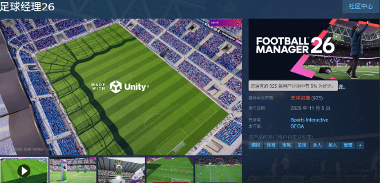 《足球经理26》于11月5日正式发售,然而在Steam评价系统上彻底栽了。写稿时,本作的好评率只有5%,显示为差评如潮,跻身Steam历史差评榜。