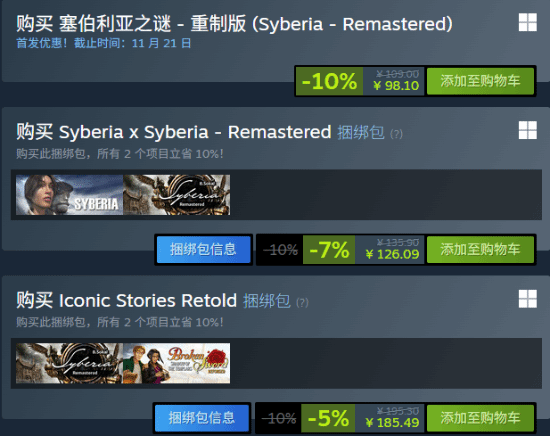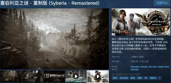 经典解谜冒险游戏《塞伯利亚之谜 重制版》今日发售!Steam国区原价109元,11月21日前首发9折,优惠价为98.1元。