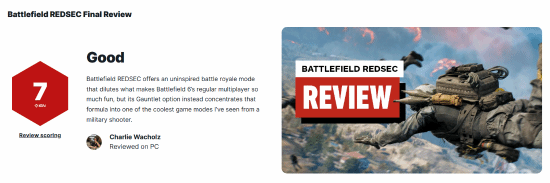《战地6》大逃杀模式“禁区冲突”已于10月28日正式上线。今日,IGN评测现已出炉,给予了该模式7分的评价。