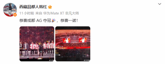 在AG夺冠后,她本人也第一时间发微博恭喜:“恭喜成都AG夺冠,恭喜一诺! ”