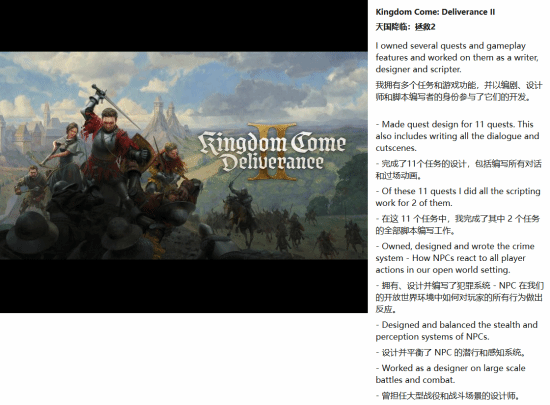 据Karel Kolmann在领英上分享的信息,他已经正式离开Warhorse Studios,加入CD Projekt Red,并且他在个人介绍中明确提到了《巫师4》。Kolmann在Warhorse Studios工作了八年,历任多个职位,最近是《天国:拯救2》的高级游戏设计师。