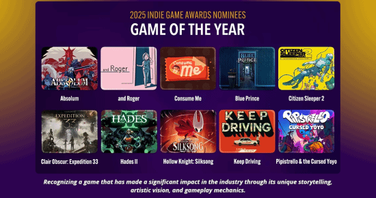 值得一提的是,提名名单由一个多元化的评审团选出,成员包括独立游戏展的策展人和行业专家,以及来自游戏新闻和内容创作领域的知名人士。