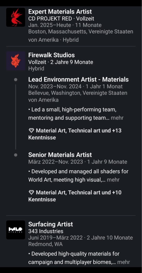 推主@Pirat_Nation今日发现,《星鸣特攻》美术师已加入CDPR位于波士顿的工作室,该工作室是《赛博朋克2077》续作(Project Orion)的核心开发团队。