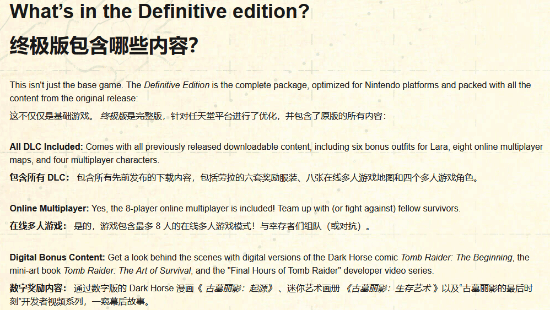 两款版本的《古墓丽影:决定版》均为19.99美元(折合人民币约142元)——Switch 2没有额外加价,并且首发还有10%的特别优惠。