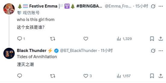 《湮灭之潮》公布后,其主角的美丽形象收到了玩家们的一致好评,外网也多有被其迷得神魂颠倒的玩家: