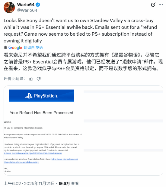 利用此漏洞的玩家目前已开始收到PlayStation发送的电子邮件,通知他们其游戏库中的《星露谷物语》副本已被移除,并指明需要拥有有效的PS Plus订阅才能游玩。