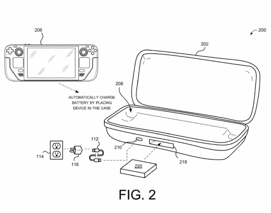 根据专利附带的示意图,当Steam Deck被放入保护壳时,其电池将“自动充电”。