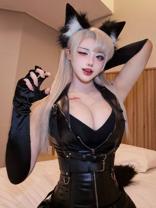 知名韩援Coser“Yasal”今日在社交媒体上晒出了全新美图,黑色吊带,半露酥胸,手机壳还是《妮姬》的。